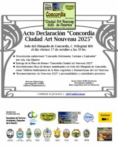 - Ceremonia de Nombramiento en el Arzobispado de Concordia con recorrido especial y descubrimiento de Placa de Bronce como “Edificio Emblemático 2025 de Argentina”