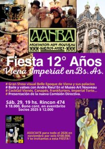 Casa Museo del Art Nouveau Rincón 474 CABA tel. 4943 7251 Agencia de viajes responsable TOURSTAR Sr. Alejandro Viaje Diseñado por Helena Salico de “Magnífica Buenos Aires” Información solicitarla a arte@aanba.com.ar